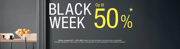 *Gælder i perioden 23.11 – 1.12.2025. Rabatten kan ikke kombineres med andre tilbud og rabataftaler. Produkter i kategorierne 'Fast Lavpris' og 'Outlet', samt produkter fra andre leverandører er ikke omfattet af rabatten.