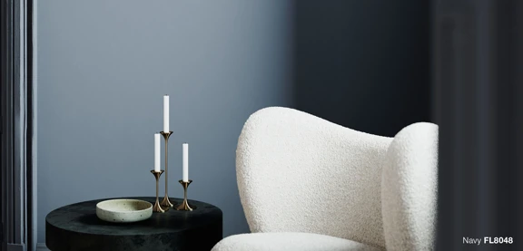 Med farven Navy FL8048 kommer de store rum til at virke mere hyggelige og intime – tingene trækker sig sammen om dig, og den skaber en sfære af fordybelse omkring dig. Den trækker dit fokus hen på de ting, som du har foran dig, og hen på de samtaler, som du har.
