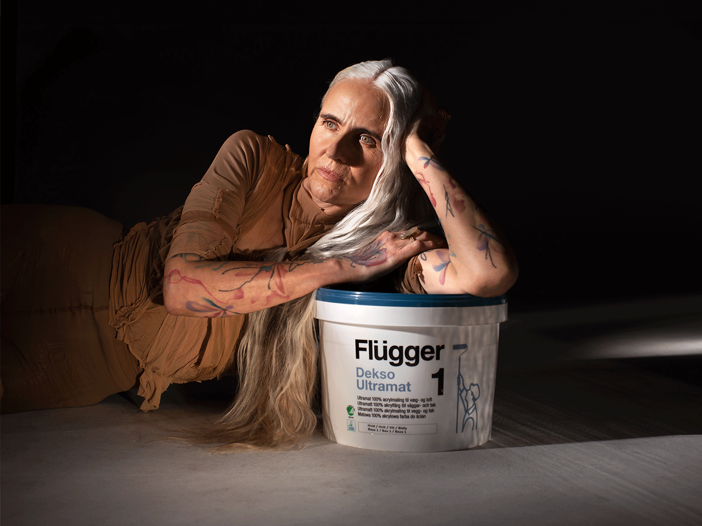 Tatoveringerne på Tinas arme og hænder er de farver som hun har med sig. Det er farver, der ikke skal kontrolleres, men mærkes.