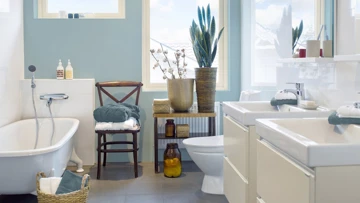 Husets velværerum, badeværelset, hvor dagen for mange både starter og slutter. Det er her man vågner stille op, og her dagens stress vaskes af – det er her, der er mulighed for alenetid. Med farver og teksturer kan rummet gøres til en oase for krop og sjæl.