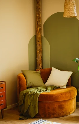I stuen er der brugt S5010-G70Y – en rolig og sofistikeret farve med naturlig harmoni og balance.