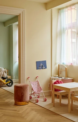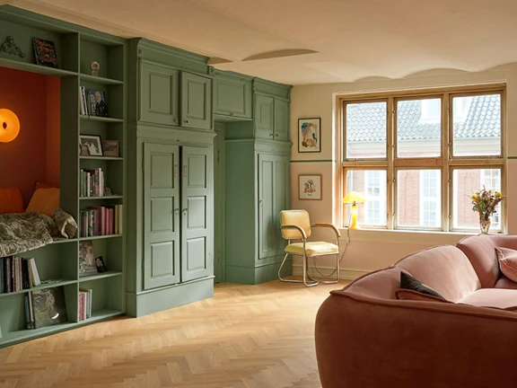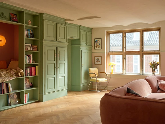 Om aftenen forsvinder børnene i Pale Yellow og Bora Mint, mens de voksne sætter sig i soveværelset, også kaldet voksenafdelingen. Her kan man glemme at verden larmer.