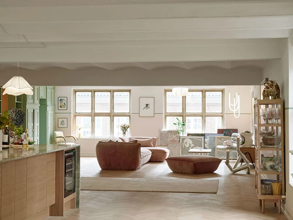Under Christianshavns tage bor Maria og Pelle i en lejlighed med mere historie end flere gader til sammen. Før dem duftede her af nybagte Marie-kiks og parfume fra den gamle fabrik, der engang holdt til i bygningen. Nu dufter luften af maling, kaffe og et børneunivers i bevægelse. De startede med tomme vægge og tolv tons støv og endte med et hjem, hvor historien stadig hænger i murene.