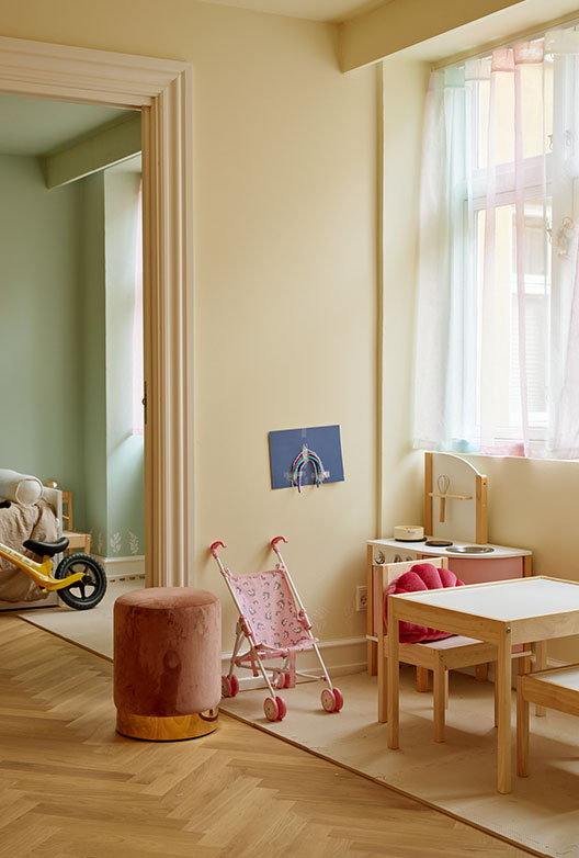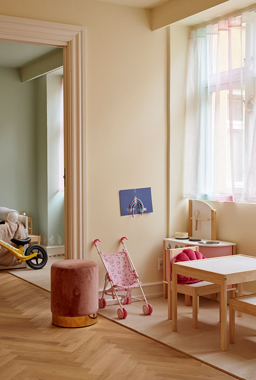 “Lyserød, mintgrøn og hvid er ikke bare farver her. Det er stemninger. Vi går altid efter en fri, fantasifuld og glad energi. Og selv når farverne bliver mange, skal de stadig kunne ånde.”
