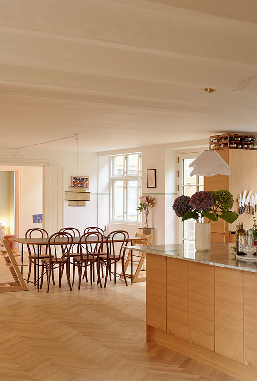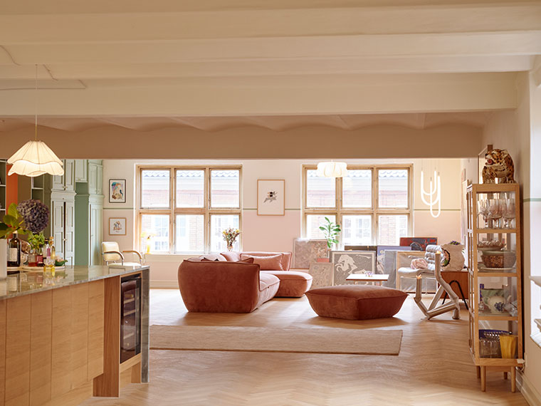 Under Christianshavns tage bor Maria og Pelle i en lejlighed med mere historie end flere gader til sammen. Før dem duftede her af nybagte Marie-kiks og parfume fra den gamle fabrik, der engang holdt til i bygningen. Nu dufter luften af maling, kaffe og et børneunivers i bevægelse. De startede med tomme vægge og tolv tons støv og endte med et hjem, hvor historien stadig hænger i murene.