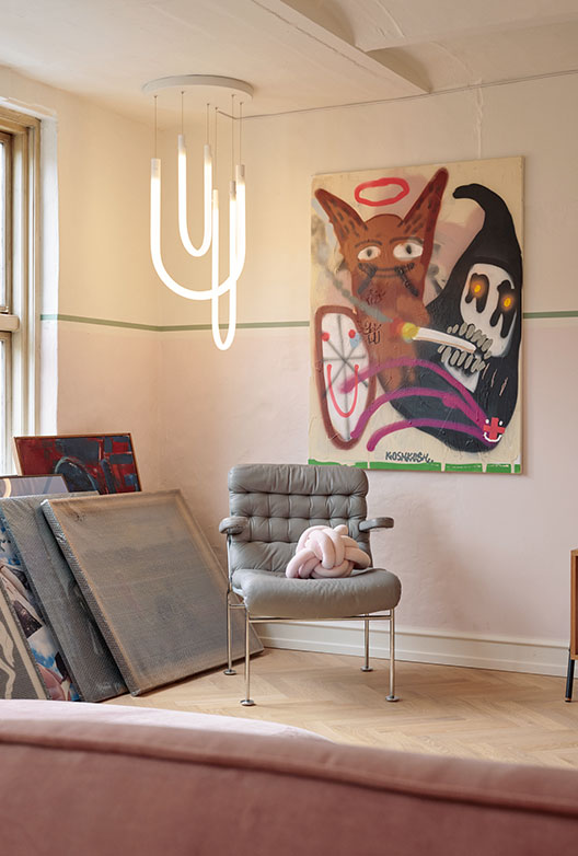 Om aftenen forsvinder børnene i Pale Yellow og Bora Mint, mens de voksne sætter sig i soveværelset, også kaldet voksenafdelingen. Her kan man glemme at verden larmer.