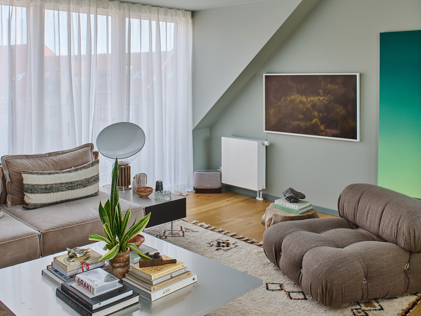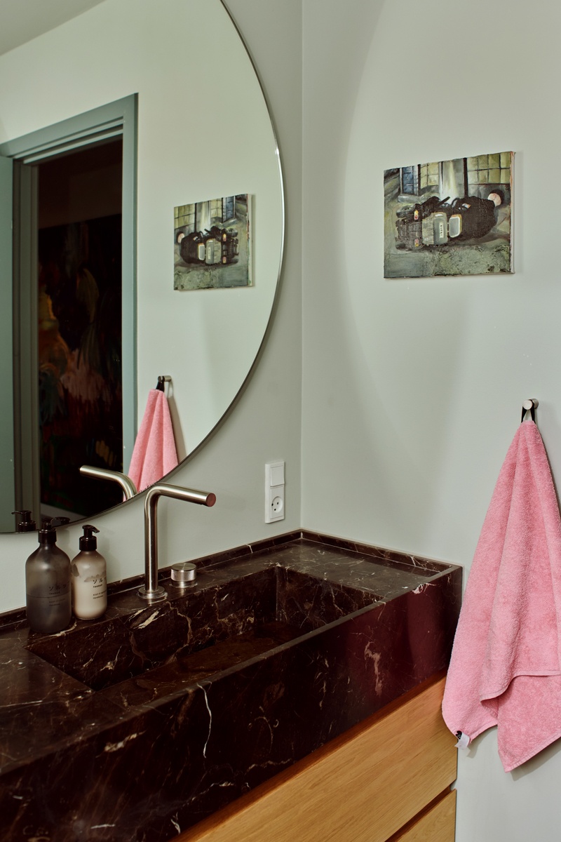 Og netop holdbarhed og tidløshed er årsagerne til, at det kun er hjemmets malbare flader, der har fået farve, for det er nemmere at male en væg om end at udskifte fast inventar eller store møbler: ”Det er jo også mere bæredygtigt at lave om på end hvis man fx har købt sig en bottegagrøn sofa, man så bli’r træt af” siger Emil, der dog drømmer om på sigt også at få farver ind i sin garderobe: ”Jeg elsker faktisk farver og tiltrækkes af farverig kunst, tøj og møbler. I fremtiden ville jeg gerne blive endnu bedre til farve i mit tøjvalg, men jeg er ikke modig nok endnu.”