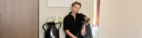 Hans stil bærer præg af linjer, materialer og en palet der giver varme uden støj.