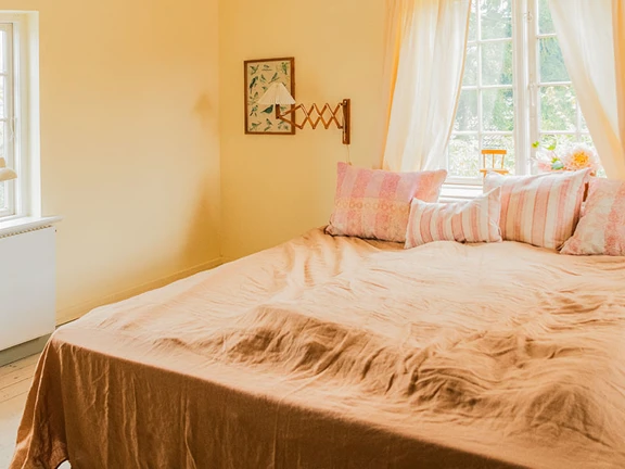 I stuen ligger de varme toner, hvor solen bevæger sig gennem dagen. Men den virkelige magi sker i udestuen. Den er malet, brugt, elsket. Det er jo her lyset står længst, og det er blevet Pippi Olivias yndlingssted.