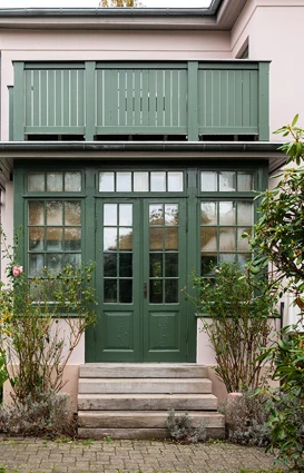”Jeg ønskede fra starten et lyserødt hus med grønne vinduer. Jeg var inspireret af Monets Have og hus i Frankrig med en blanding af Dronning Margrethes smukke farvevalg og farverne fra Mallorca. Hvor sydens sol har bleget husfacaderne og gjort farverne endnu smukkere med årene.”