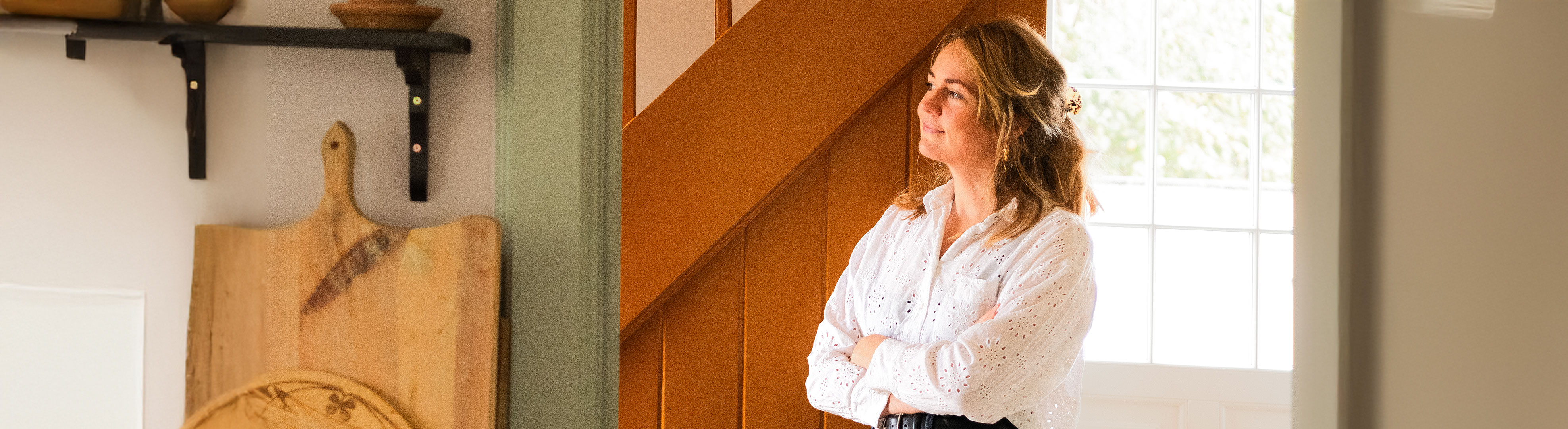 “Jeg er inspireret af Frankrig, farverige døre, gammelt håndværk og trægulve med sjæl. Jeg genbruger alt, hvad jeg kan, og elsker det ‘lived in’ udtryk, med møbler der har historie og ting med betydning. Ikke en gul vase fra IKEA.”