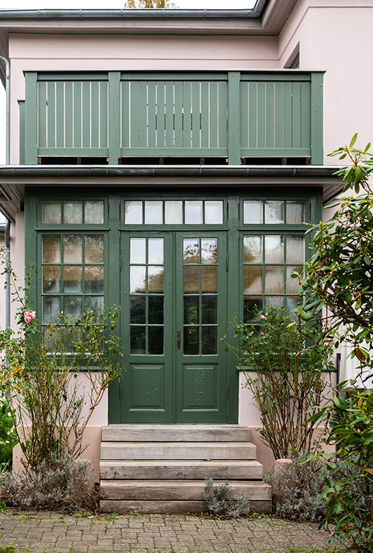 ”Jeg ønskede fra starten et lyserødt hus med grønne vinduer. Jeg var inspireret af Monets Have og hus i Frankrig med en blanding af Dronning Margrethes smukke farvevalg og farverne fra Mallorca. Hvor sydens sol har bleget husfacaderne og gjort farverne endnu smukkere med årene.”