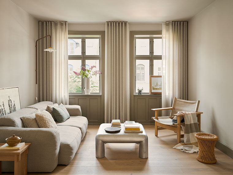 “De rum man bruger mest, skal have en base der kan holde til både hverdagen og alle de ting man samler. Warm Nara tager imod lyset og giver noget tilbage. Den gør at detaljerne står klarere. Jeg kan godt lide når et rum overrasker lidt, og når materialer og lys arbejder sammen, så det får karakter.”