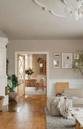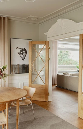 Vi træder ind i en murermestervilla fra 1936 og mærker fandeme historien med det samme med de høje lofter, de klassiske paneler der står snorlige og de solide gulve, hvor proportionerne allerede var tænkt ordentligt igennem fra første streg.
