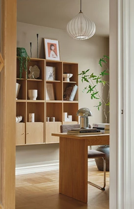 “Stuen, hvor vi har en stor sofa og tæppe, og hvor jeg har bygget en stor københavnerreol på endevæggen.”