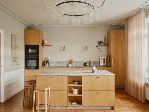 Køkkenet ligger dér, hvor børnene smider taskerne, hvor der bliver lavet lektier ved bordet, og hvor snakken fortsætter længe efter tallerkenerne er ryddet. Hun tester ting af, maler igen, flytter rundt, justerer, retter til –– og til igen!