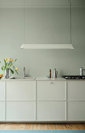 - Brug forskellige nuancer fra samme farvefamilie på både vægge og lofter for at skabe sammenhæng hjemmet igennem.