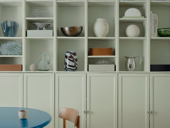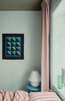 Rolige nuancer danner baggrund for farverige kontraster i Freddies indretning.