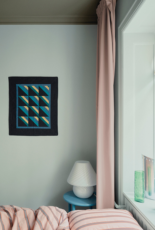 Rolige nuancer danner baggrund for farverige kontraster i Freddies indretning.