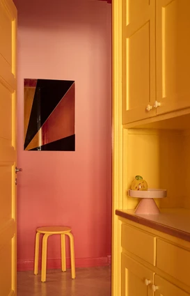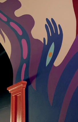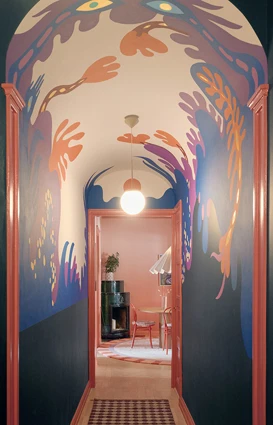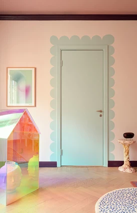 Det føles ikke som at træde ind i en lejlighed. Det føles som at træde ind i et sind. Et sted, hvor farverne ikke bare bliver på væggene, men overskrider dem. Som om de trænger ud. Skifter form. Tilstand. Dimension. De sidder ikke fast i malingen. De bevæger sig. Ind i én. Gør noget ved én.