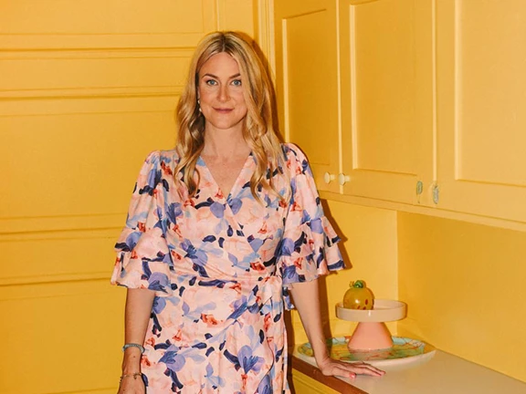 I køkkenet hersker en blød gul nuance. En af Saras absolutte favoritter. Den løfter humøret og skaber energi, men har også et selvtillidsboost indbygget.