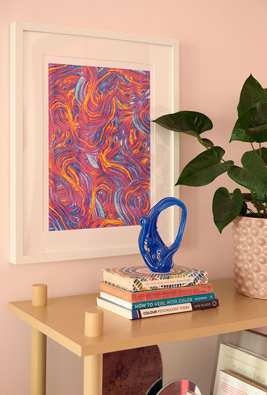 Farverne er hendes vidner. Et refleksivt værktøj, der skaber harmoni, åbner op for heling og giver plads til glæde og nærvær.