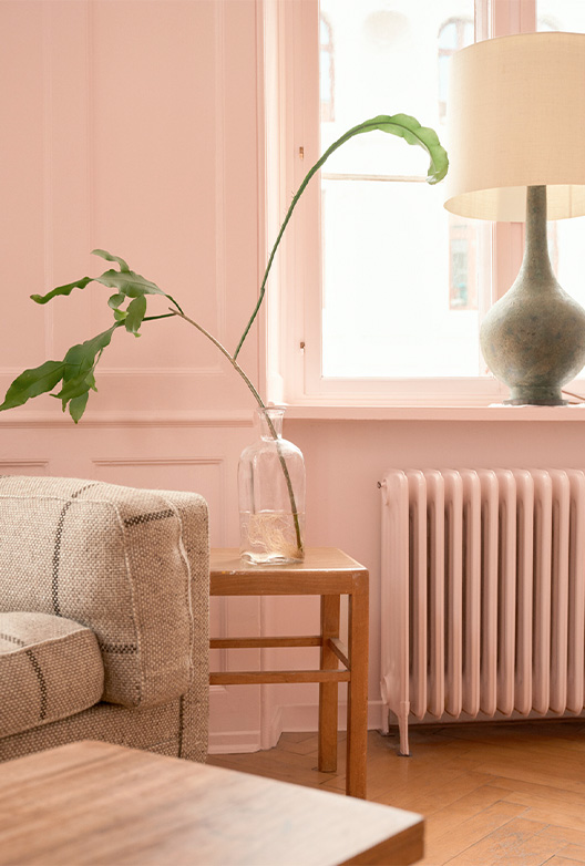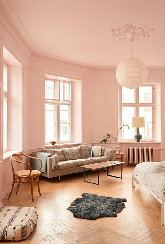 I soveværelset bliver det mere sanseligt. Her dominerer Pink Picnic. En afdæmpet, varm rosa, der omfavner uden at blive rørstrømsk. Noget, der blev efterladt af en anden version af én selv.