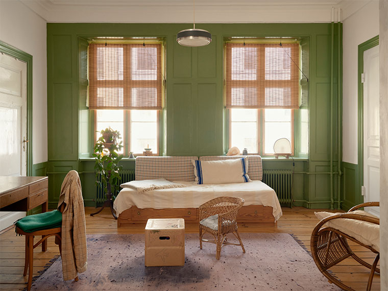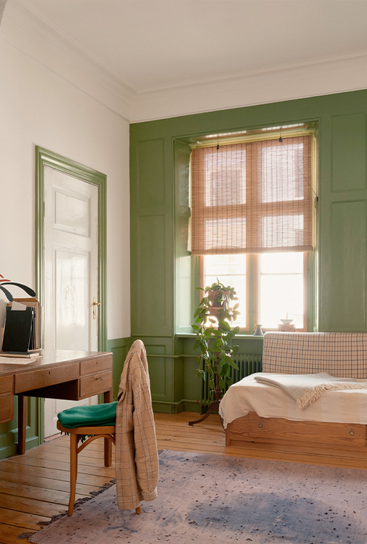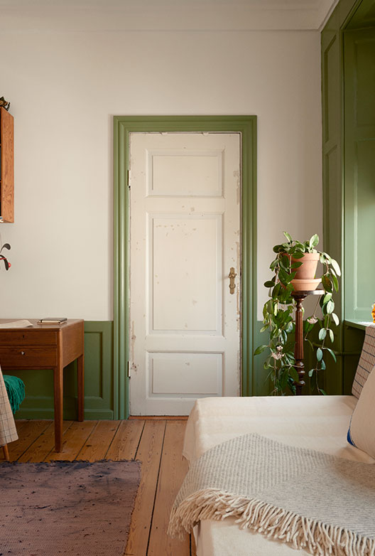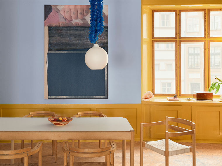 Hjemmets farver har alle en rolle. Fra spisestuen malet i Berliner Blå og Okker Gul til det sanselige soveværelse i Pink Picnic. Farverne fungerer som emotionelle værktøjer.