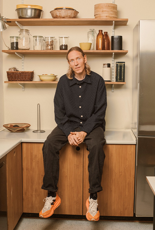 Hans hjem, som han deler med sin kæreste og deres søn, er ikke en bolig i gængs forstand. Det er en levende organisme. En fysisk udledning af den kreative energi, han i årevis har ladet strømme gennem musikken. Her opstår ting af nødvendighed. Her får intet lov at være statisk.
