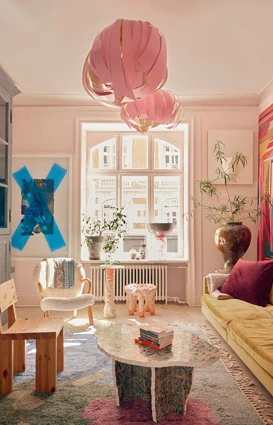 "Vores lejlighed får ikke vildt meget lys ind, fordi vi bor i stueetagen, så det er rigtig dejligt, at Pink Picnic lysner vores stue."