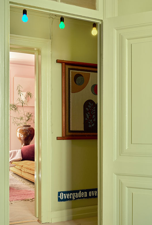 "Vores lejlighed får ikke vildt meget lys ind, fordi vi bor i stueetagen, så det er rigtig dejligt, at Pink Picnic lysner vores stue."