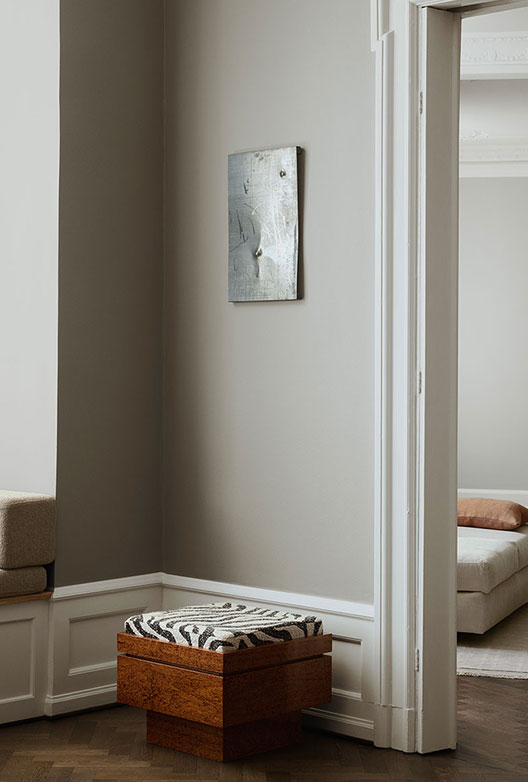 Neutrale beigetoner med balance og varme. Tænk ler, hør og stilhed.