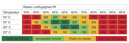 Typiske problemer på grund af høj luftfugtighed og lav temperatur