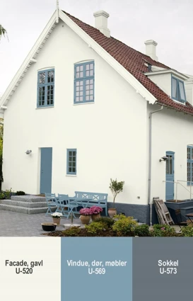 Jo flere elementer omkring huset, du koordinerer i farven, jo mere gennemført virker det. Så tænk også på udhæng, sokkel, havemøbler og andet.