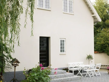 - Heldækkende maling, så træets struktur kan ikke ses igennem.