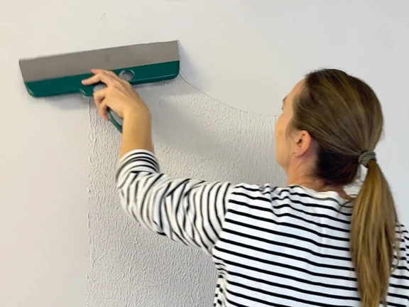 - Rul spartel på væggen i mindre sektioner. Glat overfladen med bredspartlen, inden du starter på næste sektion.