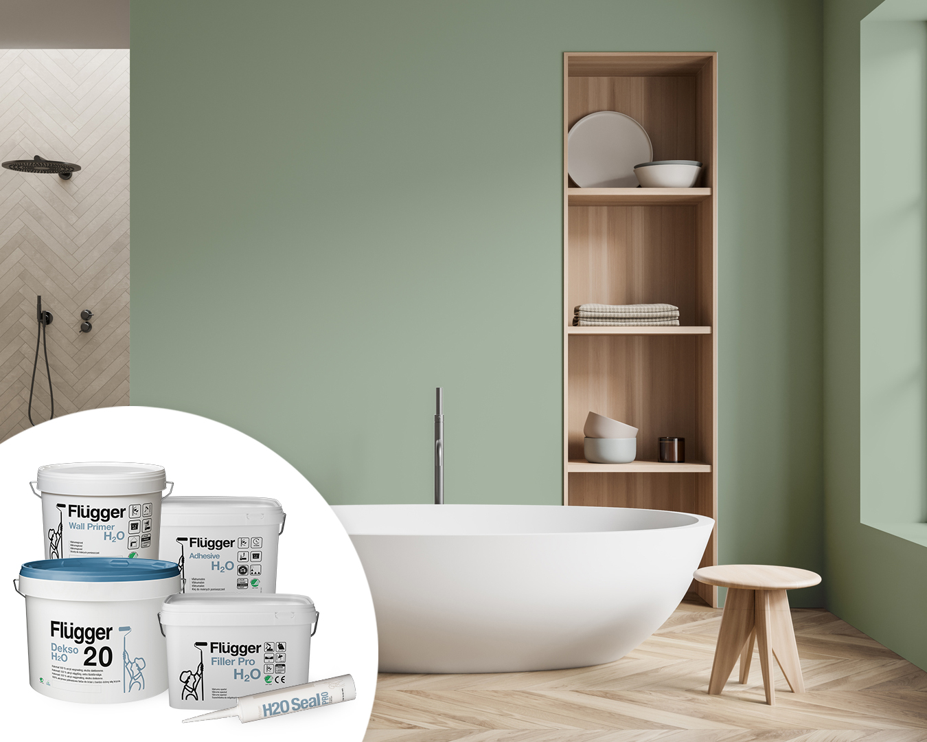 Indgår i Flügger H2O vådrumssystem