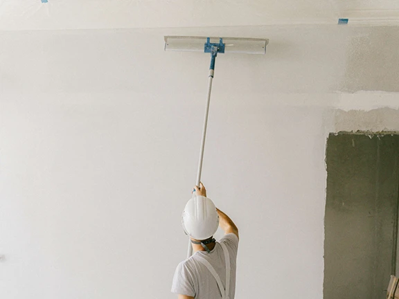 For at vævfylder tjener sit formål, er et enkelt lag ofte nok til at mætte bunden inden påførsel af maling. Vi anbefaler dog, at du tjekker bunden for ujævnheder, når den er overfladetør. Det er tydeligt hvis der er områder uden rigeligt med vævfylder. Du bør derfor inspicere nøje for ikke at skulle overmale med slutmaling mere end højst nødvendigt. Du påfører vævfylder med en langhåret malerrulle på 24-30 cm og en vinkelpensel til kanter og hjørner. Et jævnt og dækkende lag fordeles oppefra og ned. Efter kan du overmale med den ønskede farve og glans uden at bekymre dig om ujævnheder på overfladen.
