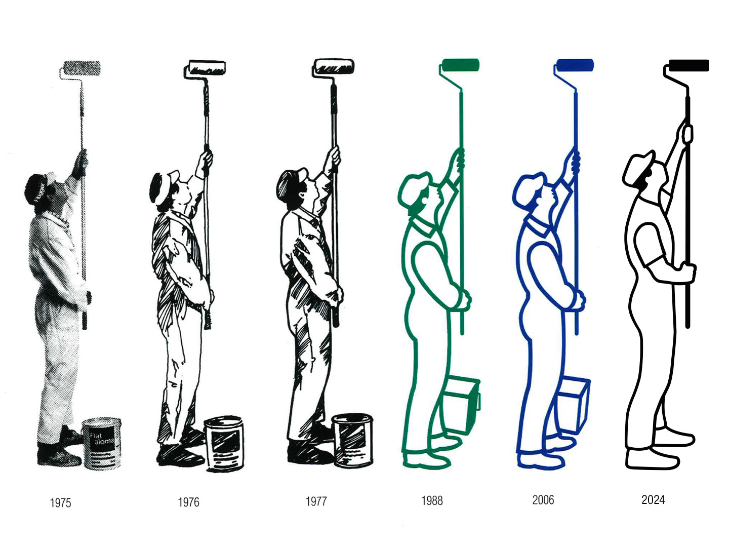 Nedenfor kan du se hvordan malermanden har udviklet sig gennem tiden fra det oprindelige billede henimod en mere enkel, grafisk illustration.