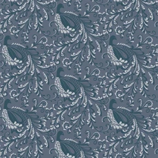 - Påfuglemønster i blå/sølv på mørkeblå bund