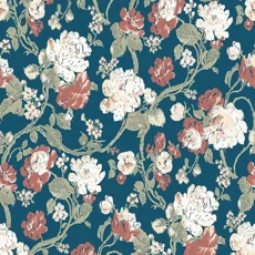 - Blomster i hvid og rød på mørkeblå baggrundinspireret af impressionismen